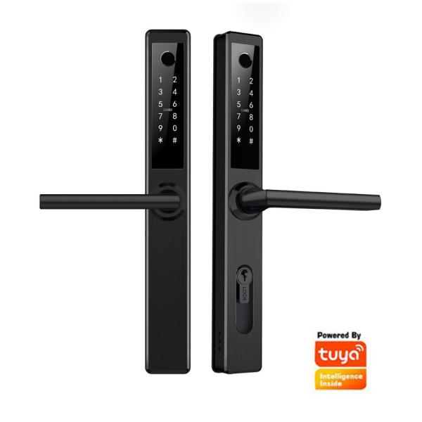 This is our new-designed aluminum smart door lock. Adopt the latest stainless steel structural design, which panel width is only 38 mm, be suitable for any aluminum door which frame is more than 46mm. This lock can also be used for wooden and security doors, and fits all kinds of mortise.